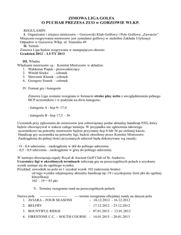Regulamin - Pole Golfowe Zawarcie