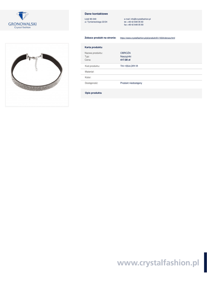 Dane kontaktowe - GRONOWALSKI Crystal Fashion