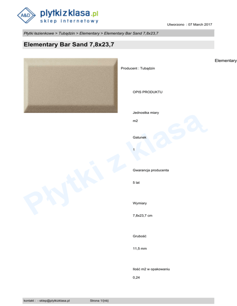 Elementary Bar Sand 7,8x23,7 - Płytki z klasą