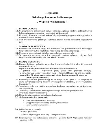 Regulamin Szkolnego konkursu kulinarnego „ Wypieki wielkanocne ”