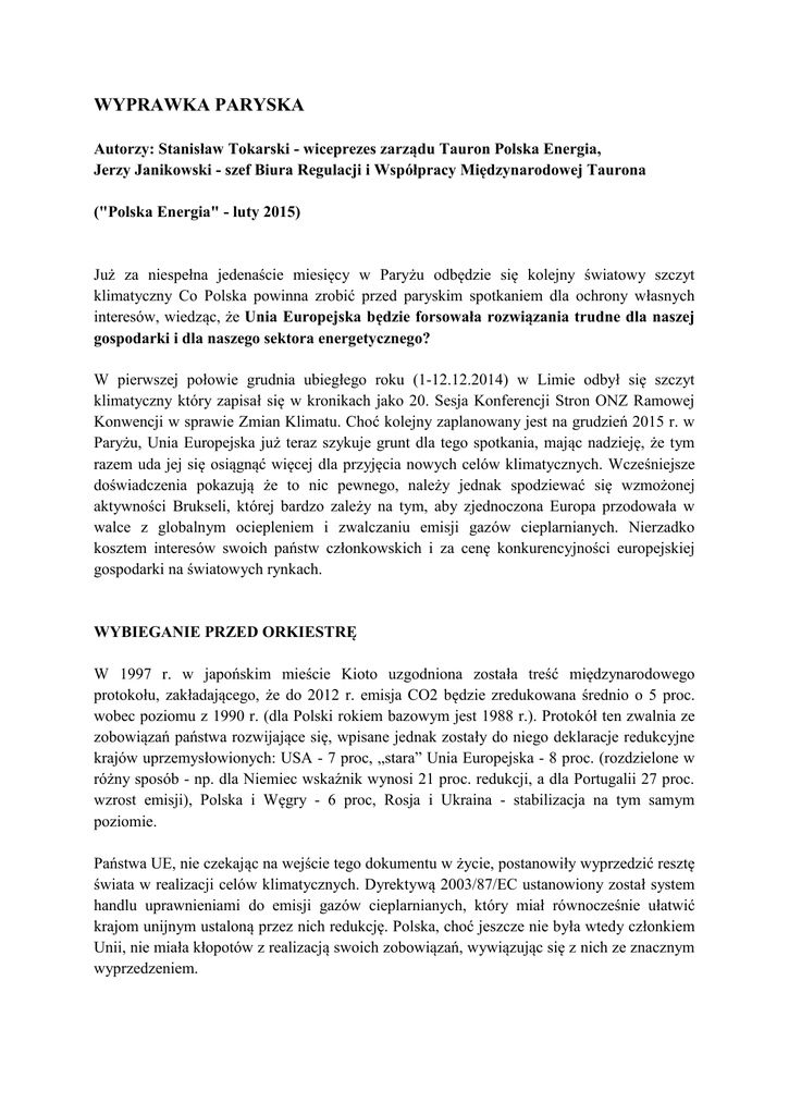 Autorzy: Stanisław Tokarski - wiceprezes zarządu Tauron Polska Energia,