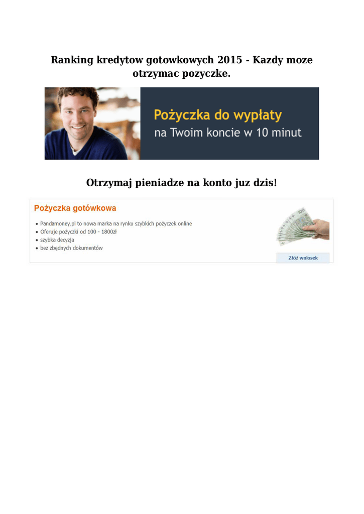 Ranking kredytow gotowkowych 2015