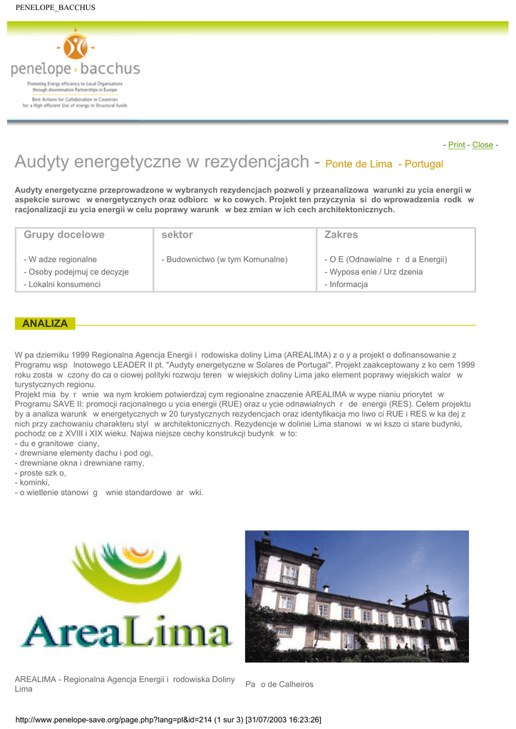 Audyty energetyczne w rezydencjach - Ponte de Lima