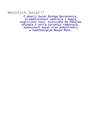 Wesołych Świąt!! Z okazji świąt Bożego Narodzenia, przepełnionych nadzieją i magią wigilijnej nocy, kierujemy do Państwa płynące z serca życzenia radosnych, spokojnych świąt oraz pomyślności w nadchodzącym Nowym Roku.