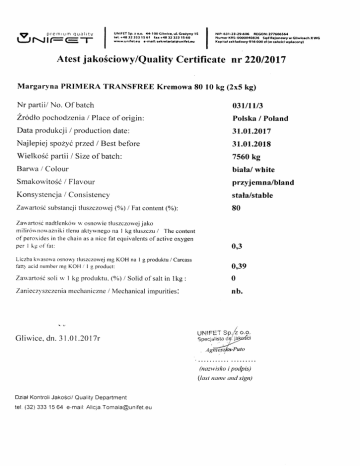 Zasy.artoŚcsubstarrcjitłuszczowej (%) l Fat content (Yo):