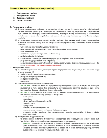 Temat 9: Pozew z zakresu sprawy cywilnej.
