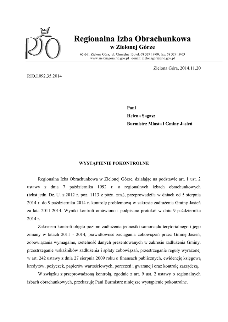 Zielona Góra, 2014 - (BIP) Regionalnej Izby Obrachunkowej w