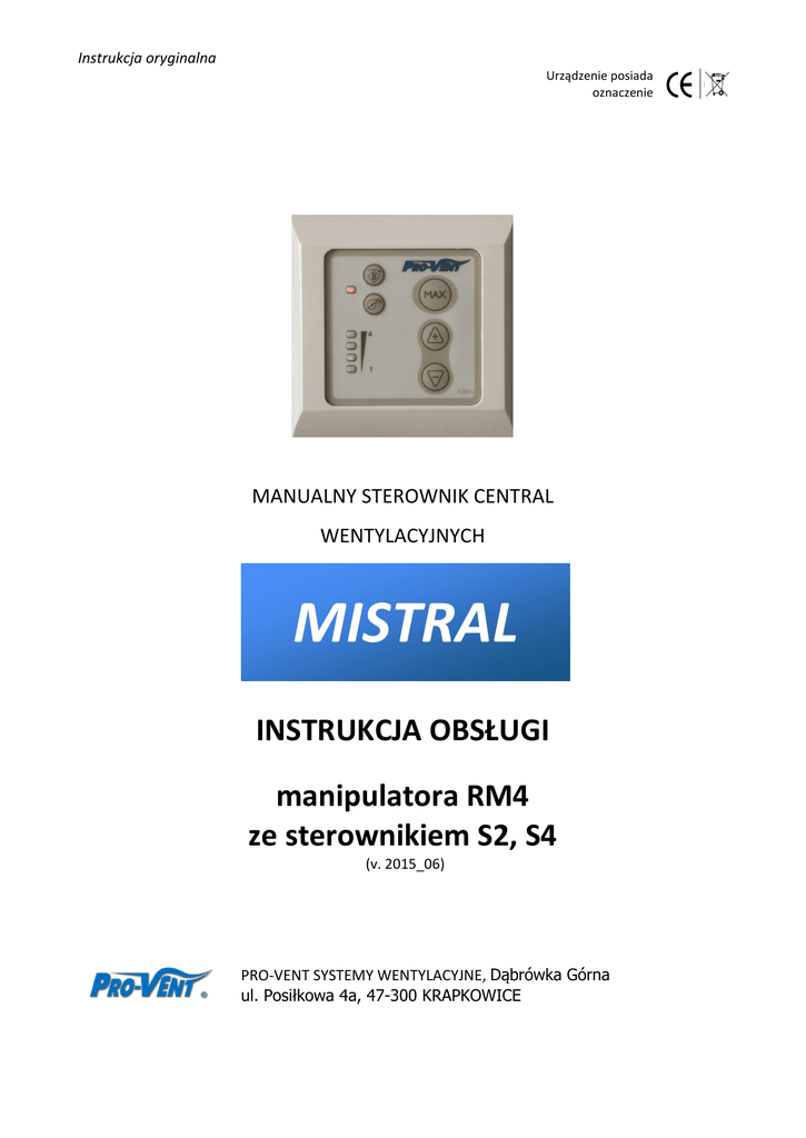 Instrukcja obsługi sterownika RM4 - Pro-Vent