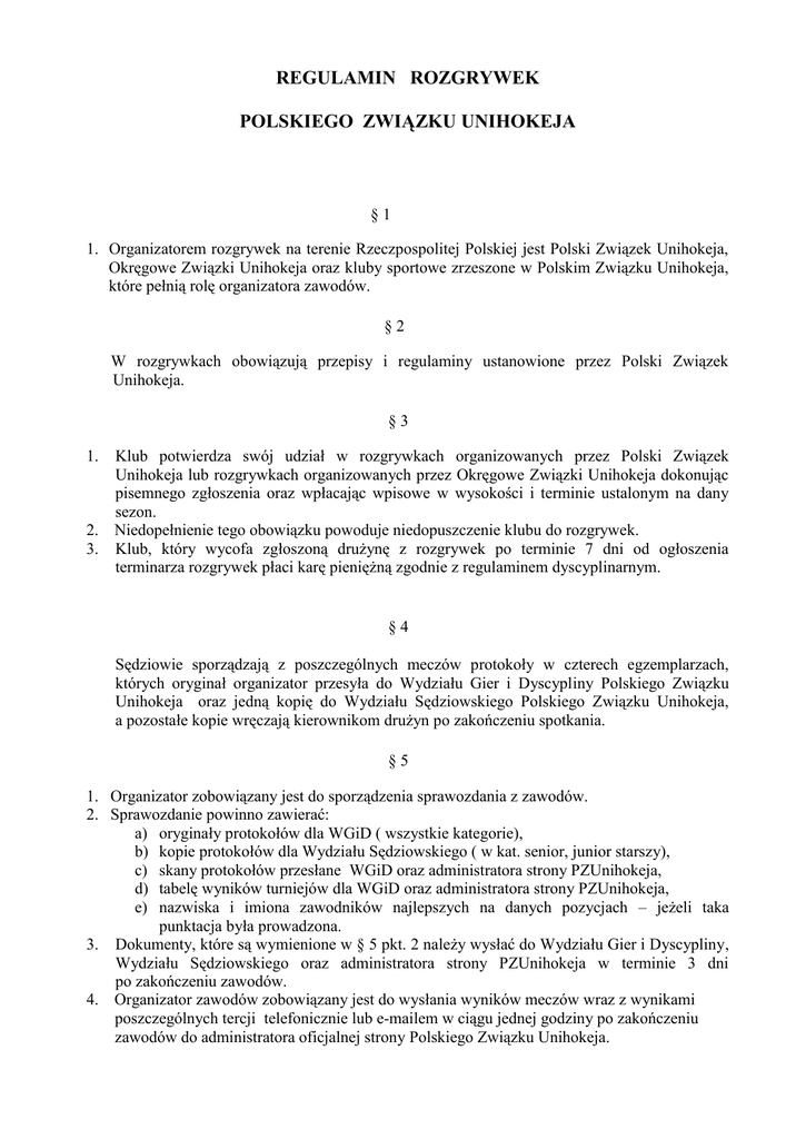 PZU_Regulamin rozgrywek PZUnihokeja