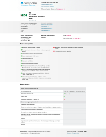 Szczegóły oferty z dnia 07.03.2017 Zobacz ofertę on-line Zrób porównanie on-line Masz pytania? Zadzwoń! 22 395 52 72 OC AC Turbo Assistance Standard NNW Ważne cechy ubezpieczenia: Dokumenty do pobrania: Suma ubezpieczenia: 84 407 zł OWU Komunikacja HDI Naprawa ASO OWU HDI AC Wprowadzona OWU HDI Assistance Bagaż OWU HDI NNW Brak Pojazd, podsumowanie: Właściciel, podsumowanie: Lexus IS 220 D Sport Mężczyzna Cena: 5 484 zł Zadzwoń do nas: 22 395 52 71 Przebieg: 51 000km Rok produkcji: 2011 Plusy i minusy oferty Możliwość płatności składki w ratach Brak ograniczeń wiekowych w których można ubezpieczyć pojazd Assistance Standard oraz NNW tylko za opłatą dodatkowej składki Holowanie tylko w razie wypadku Zielona karta w ramach ubezpieczenia OC Suma ubezpieczenia 5 000 tys. zł. Zakres terytorialny RP Holowanie do 100 km Pomoc informacyjna po wypadku Zabezpieczenie przed skutkami nieszczęśliwego wypadku podczas podróży samochodem kierowcy oraz pasażerów Pokrycie uszczerbku na zdrowiu kierowcy jak i pasażerów polegające na uszkodzeniu ciała lub rozstroju zdrowia Cztery warianty sumy ubezpieczenia: 5000 zł., 10000 zł., 15000 zł. oraz 30000 zł. Zakres ubezpieczenia obejmuje terytorium Europy, z wyłączeniem: Białorusi, Mołdawii, Ukrainy oraz europejskiej części Rosji. Zakres ochrony Zakres ochrony ubezpieczenia OC Suma ubezpieczenia Rozłożenie składki na raty 5 000 000 zł na osobie, 1 000 000 na mieniu 2 lub 4 raty Zielona karta Dodatkowe świadczenia w ramach OC Zakres ochrony ubezpieczenia AC Zderzenie z innym pojazdem Zderzenie z osobami, zwierzętami, lub przedmiotami znajdującymi się poza pojazdem Uszkodzenie przez osoby trzecie (wandalizm) Zamieszki, wewnętrzne niepokoje, wydarzenia wojenne Powstałych wskutek użycia pojazdu w związku z obowiązującymi świadczeniami na rzecz wojska i policji Wybuch Nagłe działanie czynnika termicznego lub chemicznego pochodzącego z zewnątrz pojazdu Powódź Comperia.pl - Porównywarka finansowa nr 1 w Polsce - teraz również z ofertą ubezpieczeń Szczegóły oferty z dnia 07.03.2017 Zobacz ofertę on-line Szczegóły oferty z dnia 07.03.2017 Zobacz ofertę on-line Zrób porównanie on-line Masz pytania? Zadzwoń! 22 395 52 72 Lawina Osunięcie i zapadanie się ziemi Grad Uderzenie pioruna Huragan Trzęsienie ziemi Kradzież pojazdu Rabunek/Rozbój Upadek statku powietrznego Pożar Zakres ochrony Assistance Suma ubezpieczenia Zakres terytorialny Wiek pojazdu do którego można wykupić ubezpieczenie Rodzaj pojazdu na który można wykupić ubezpieczenie Ograniczenia ze względu na sposób użytkowania pojazdu (np. taxi, nauka jazdy, rent a car) Opcje zawarcia Usprawnienie pojazdu na miejscu zdarzenia Pomoc w razie awarii Pomoc w razie wypadku Limit odległości od miejsca zamieszkania Miejsce holowania Samochód zastępczy Złomowanie pojazdu Parkowanie pojazdu Transport zastępczy/przewóz osób Nocleg/zakwaterowanie Dodatkowe informacje Zakres ochrony NNW Suma ubezpieczenia Wypłata świadczenia w razie śmierci 5000 zł 100 proc. świadczenia Wsiadanie i wysiadanie z pojazdu Załadowanie lub wyładowanie pojazdu Pożar, wybuch pojazdu Zatrzymanie, postój, naprawa pojazdu Podwójne świadczenie w przypadku 90% trwałego uszczerbku na zdrowiu Garażowanie pojazdu Terytorium ochrony Terytorium ochrony ubezpieczenia AC Kraje Unii Europejskiej Algeria Albania Comperia.pl - Porównywarka finansowa nr 1 w Polsce - teraz również z ofertą ubezpieczeń Szczegóły oferty z dnia 07.03.2017 Zobacz ofertę on-line Szczegóły oferty z dnia 07.03.2017 Zobacz ofertę on-line Zrób porównanie on-line Masz pytania? Zadzwoń! 22 395 52 72 Libia Maroko Mołdawia Białoruś Rosja (część europejska) Czarnogóra Serbia Bośnia i Hercegowina Tunezja Iran Turcja Izrael Ukraina Wyłączenia Wyłączenia ubezpieczenia AC Udział własny w szkodzie Amortyzacja za części Rodzaj stacji naprawczej (ze względu na metodę naprawy) Rodzaj używanych części do naprawy Okres eksploatacji pojazdu w jakim można wykupić polisę AutoCasco Minimalna szkoda (franszyza integralna) Szkoda została spowodowana wskutek rażącego niedbalstwa Kierowanie pojazdem w stanie nietrzeźwości, po zażyciu alkoholu, środków odurzających, substancji psychotropowych, lub jego pochodnych Kierujący pojazdem nie posiadał uprawnień do prowadzenia pojazdu Sprawca zbiegł lub oddalił się z miejsca zdarzenia Pojazd nie miał ważnego przeglądu technicznego lub nie jest dopuszczony do ruchu Przywłaszczenie pojazdu Kradzież wyposażenia dodatkowego Uszkodzenie wyposażenia dodatkowego pojazdu Wada fabryczna pojazdu, jego naprawa, użytkowanie w sposób niezgodny z jego przeznaczeniem Uszkodzenie lub zniszczenie ogumienia Konsumpcja sumy ubezpieczenia Szyby Wartość pojazdu Zasada proporcji Dodatkowe wyłączenia Młody kierowca Comperia.pl - Porównywarka finansowa nr 1 w Polsce - teraz również z ofertą ubezpieczeń Powered by TCPDF (www.tcpdf.org) Szczegóły oferty z dnia 07.03.2017 Zobacz ofertę on-line