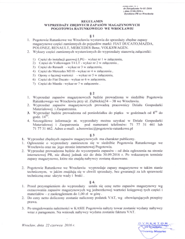 Regulamin wyprzedaży - Pogotowie Ratunkowe we Wrocławiu