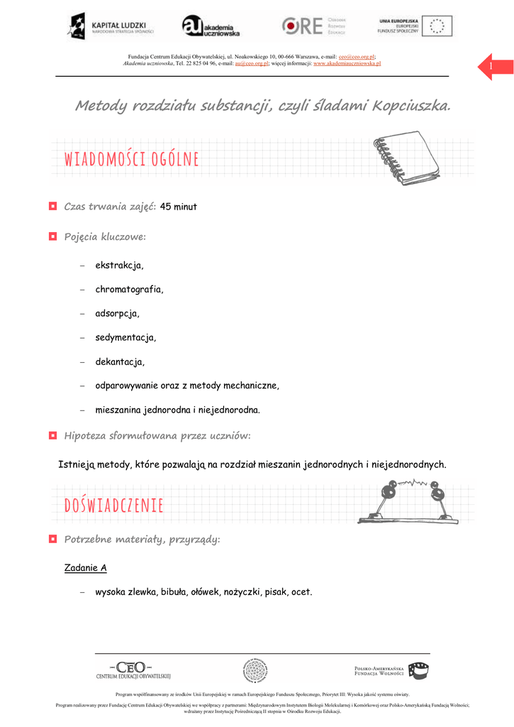 Metody rozdziału substancji, czyli śladami Kopciuszka.