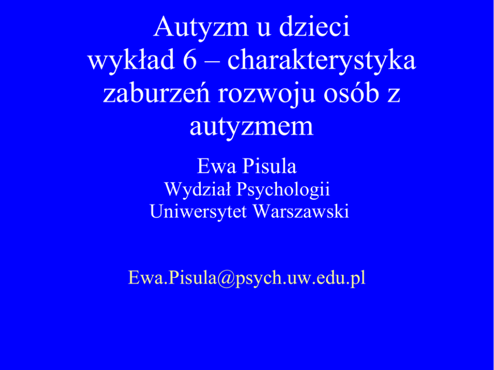 Autyzm u dzieci wykład 6 – charakterystyka zaburzeń rozwoju