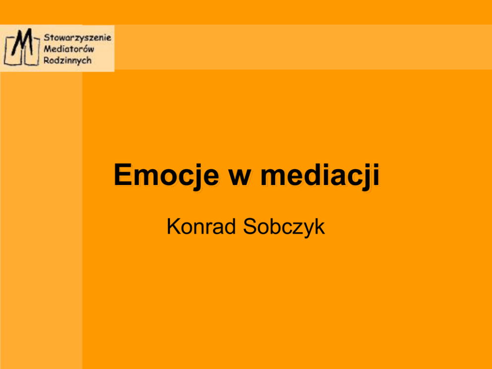 Emocje w mediacji Konrad Sobczyk Rola emocji Celem mediacji jest wypracowanie akceptowalnego dla wszystkich stron konfliktu porozumienia. Emocje wykorzystuje się do wspierania negocjacji i analizuje się je pod kątem ich wpływu na ten proces. Emocje- narzędzie do: • Budowania zaufania i komfortu stron • Analizy potrzeb • Analizy konfliktu • Analizy procesu rozstania • Uświadamiania zmiany Katarzyna i Dawid Działania Katarzyna Ogranicza kontakt syna z ojcem, Trzyma się sztywno ustaleń Przekonania/Emocje – Katarzyna „Dać mu palec a weźmie całą rękę” Strach przed utratą wpływu Przekonania/Emocje – Dawid „Ona decyduje o wszystkim” Bezsilność, Wściekłość Działania Dawid Łamie ustalenia, wprowadza zmiany Katarzyna • Przekonania, Emocje „Dać mu palec a weźmie całą rękę” Strach przed utratą wpływu • Działania Ogranicza kontakt syna z ojcem, Trzyma się sztywno ustaleń Dawid • Przekonania/Emocje „Ona decyduje o wszystkim” Bezsilność, Wściekłość • Działania Łamie ustalenia, Wprowadza zmiany Czyli Działania Katarzyna Ogranicza kontakt syna z ojcem, Trzyma się sztywno ustaleń Przekonania/Emocje – Katarzyna „Dać mu palec a weźmie całą rękę” Strach przed utratą wpływu Przekonania/Emocje – Dawid „Ona decyduje o wszystkim” Bezsilność, Wściekłość Działania Dawid Łamie ustalenia, wprowadza zmiany Emocje w mediacji Dziękuję bardzo! Konrad Sobczyk