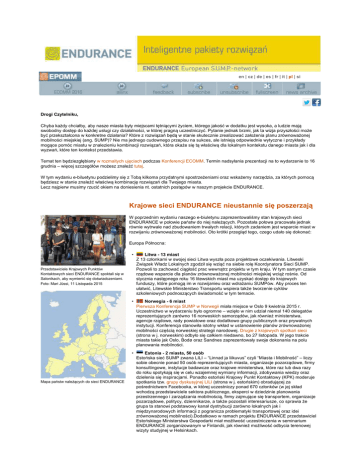 en | cz | de | es | fr | it | pl | si Drogi Czytelniku, Chyba każdy chciałby, aby nasze miasta były miejscami tętniącymi życiem, którego jakość w dodatku jest wysoka, a ludzie mają swobodny dostęp do każdej usługi czy działalności, w której pragną uczestniczyć. Pytanie jednak brzmi, jak ta wizja przyszłości może być przekształcona w konkretne działania? Które z rozwiązań będą w stanie skutecznie zrealizować założenia planu zrównoważonej mobilności miejskiej (ang. SUMP)? Nie ma jednego cudownego przepisu na sukces, ale istnieją odpowiednie wytyczne i przykłady mogące pomóc miastu w znalezieniu kombinacji rozwiązań, która okaże się tą właściwą dla lokalnym kontekstu danego miasta jak i dla wyzwań, które ten kontekst przedstawia. Temat ten będziezgłębiany w rozmaitych ujęciach podczas Konferencji ECOMM. Termin nadsyłania prezentacji na to wydarzenie to 16 grudnia – więcej szczegółów możesz znaleźć tutaj. W tym wydaniu e-biluetynu podzielimy się z Tobą kilkoma przydatnymi spostrzeżeniami oraz wskażemy narzędzia, za których pomocą będziesz w stanie znaleźć właściwą kombinację rozwiązań dla Twojego miasta. Lecz najpierw musimy rzucić okiem na doniesienia nt. ostatnich postępów w naszym projekcie ENDURANCE. Krajowe sieci ENDURANCE nieustannie się poszerzają W poprzednim wydaniu naszego e-biuletynu zaprezentowaliśmy stan krajowych sieci ENDURANCE w połowie państw do niej należących. Pozostała połowa pracowała jednak równie wytrwale nad zbudowaniem trwałych relacji, których zadaniem jest wsparcie miast w rozwijaniu zrównoważonej mobilności. Oto krótki przegląd tego, czego udało się dokonać: Europa Północna: • Litwa - 13 miast Z 13 członkami w swojej sieci Litwa wyszła poza projektowe oczekiwania. Litweski Związek Władz Lokalnych zgodził się wziąć na siebie rolę Koordynatora Sieci SUMP. Pozwoli to zachować ciągłość prac wewnątrz projektu w tym kraju. W tym samym czasie rządowe wsparcie dla planów zrównoważonej mobilności miejskiej wciąż rośnie. Od stycznia następnego roku 16 litewskich miast ma uzyskać dostęp do krajowych funduszy, które pomogą im w rozwijanieu oraz wdrażaniu SUMPów. Aby proces ten ułatwić, Litewskie Ministerstwo Transportu wspiera także tworzenie cyklów szkoleniowych podnoszących świadomość w tym temacie. • Norwegia - 6 miast Pierwsza Konferencja SUMP w Norwegii miała miejsce w Oslo 9 kwietnia 2015 r. Uczestnictwo w wydarzeniu było ogromne – wzięło w nim udział niemal 140 delegatów reprezentujących zarówno 16 norweskich samorządów, jak również ministerstwa, agencje rządowe, rady powiatowe oraz dodatkowo grupy publicznych oraz prywatnych instytucji. Konferencja stanowiła istotny wkład w ustanowienie planów zrównoważonej mobilności częścią norweskiej strategii narodowej. Drugie z krajowych spotkań sieci (strona w j. norweskim) odbyło się całkiem niedawno, bo 27 listopada. W jego trakcie miasta takie jak Oslo, Bodø oraz Sandnes zaprezentowały swoje dokonania na polu planowania mobilności. • Estonia - 2 miasta, 50 osób Estońska sieć SUMP zwana LILI – “Linnad ja liikuvus” czyli “Miasta i Mobilność” – liczy sobie obecnie ponad 50 osób reprezentujących miasta, organizacje pozarządowe, firmy konsultingowe, instytucje badawcze oraz krajowe ministerstwa, które raz lub dwa razy do roku spotykają się w celu wzajemnej wymiany informacji, zdobywania wiedzy oraz dzielenia się inspiracjami. Ponadto estoński Krajowy Punkt Kontaktowy (KPK) moderuje spotkania tzw. grupy dyskusyjnej LILI (strona w j. estońskim) obradującej za pośrednictwem Facebooka, w której uczestniczy ponad 670 członków (w jej skład wchodzą przedstawiciele sektora publicznego, eksperci w dziedzinie planowania przestrzennego i zarządzania mobilnością, firmy zajmujące się transportem, organizacje pozarządowe, politycy, dziennikarze, a także pozostali interesariusze, co sprawia że grupa ta stanowi podstawowy kanał dystrybucji zarówno lokalnych jak i międzynarodowych informacji z pogranicza problematyki transportowej oraz idei zrównoważonej mobilności).Dodatkowo w ramach projektu ENDURANCE przedstawiciel Estońskiego Ministerstwa Gospodarki miał możliwość uczestniczenia w seminarium ENDURANCE zorganizowanym w Finlandii, jak również możliwość odbycia terenowej wizyty studyjnej w Helsinkach. Przedstawiciele Krajowych Punktów Kontaktowych sieci ENDURANCE spoktali się w Salonikach, aby wymienić się doświadczeniami. Foto: Mari Jüssi, 11 Listopada 2015 Mapa państw należących do sieci ENDURANCE • Łotwa - 2 miasta 21 października łotewska sieć ENDURANCE zorganizowała seminarium SUMP, w którym udział wzięli reprezentanci 10 miast i okręgów samorządowych, dwóch regionów administracyjnych oraz Ministerstwa Transportu. Kilka miast oraz samorządów zaprezentowało swoje plany i projekty z dziedziny transportu, infrastruktury miejskiej oraz rozwoju mobilności w perspektywie długoterminowej do 2020 r. Uczestnicy wskazywali na przydatność takich spotkań i dyskusji oraz wyrazili chęć uczestnictwa w podobnych seminariach w przyszłości. Miasta Daugavpils i Rezekne dołączyły do sieci ENDURANCE, a pozostałe wyraziły swoje zainteresowanie przystąpieniem do niej w przyszłości. Europa Wschodnia: • Węgry - 7 miast Siedem węgierskich miast przystąpiło do sieci ENDURANCE. W roku 2015 zyskała ona nowego członka – Krajowe Stowarzyszenie Osiedli Przyjaznych Rowerom - KETOSZ. Dotychczas zorganizowano dwa krajowe spoktania SUMP, a kolejne ma odbyć się w lutym przyszłego roku. Chociaż większość miast nadal nie posiada planów zrównoważonej mobilności miejskiej, ich przedstawiciele są zainteresowani poszerzaniem swojej wiedzy na temat przygotowania własnych SUMPów w przyszłości. W stolicy kraju, Budapeszcie SUMP jest na etapie wdrażania, a efekty tego procesu zostały