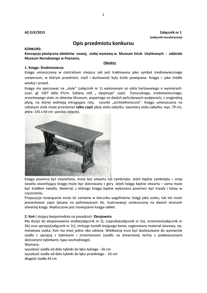 Ma służyć do eksponowania siodła(załącznik nr 2), czapraka(załącznik nr 2a), strzemion(załącznik nr