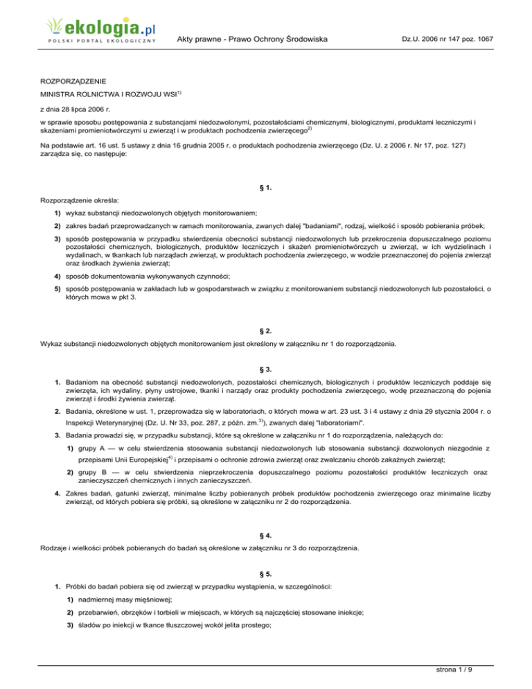 ekologia.pl - Dz.U. 2006 nr 147 poz. 1067