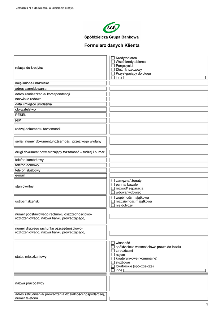 Formularz danych Klienta - Bank Spółdzielczy w Słupcy