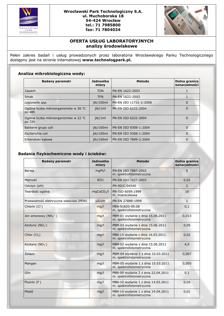OFERTA USŁUG LABORATORYJNYCH analizy