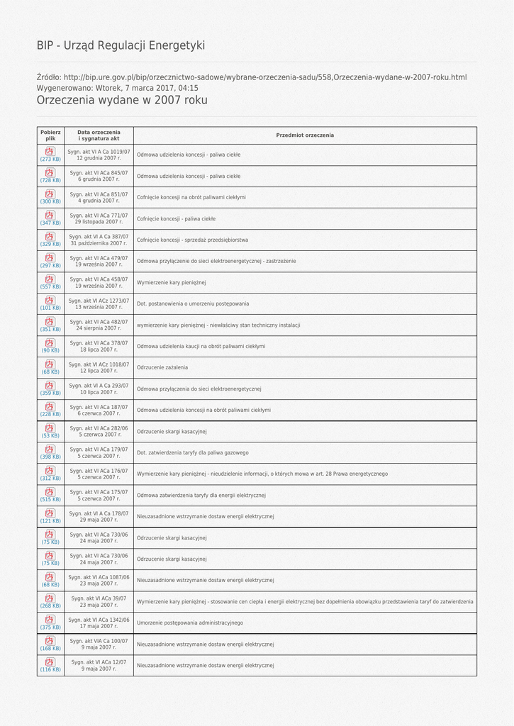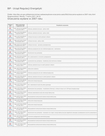 BIP - Urząd Regulacji Energetyki Orzeczenia wydane w 2007 roku