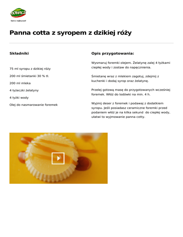 Przepis Łowicz: Panna cotta z syropem z dzikiej róży