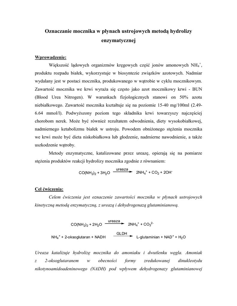 Oznaczanie mocznika w płynach ustrojowych metodą hydrolizy