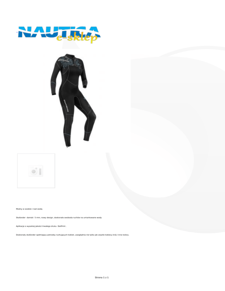 Modny w wodzie i nad wodą Skafander damski 5 mm, nowy design, doskonała swoboda ruchów na umiarkowane wody Aplikacje o wysokiej jakości trwałego druku DotPrint . Doskonały skafander spełniający potrzeby nurkujących kobiet, uwzględnia nie tylko jak zwykle kobiecy krój i inne kolory. Strona 1 z 1