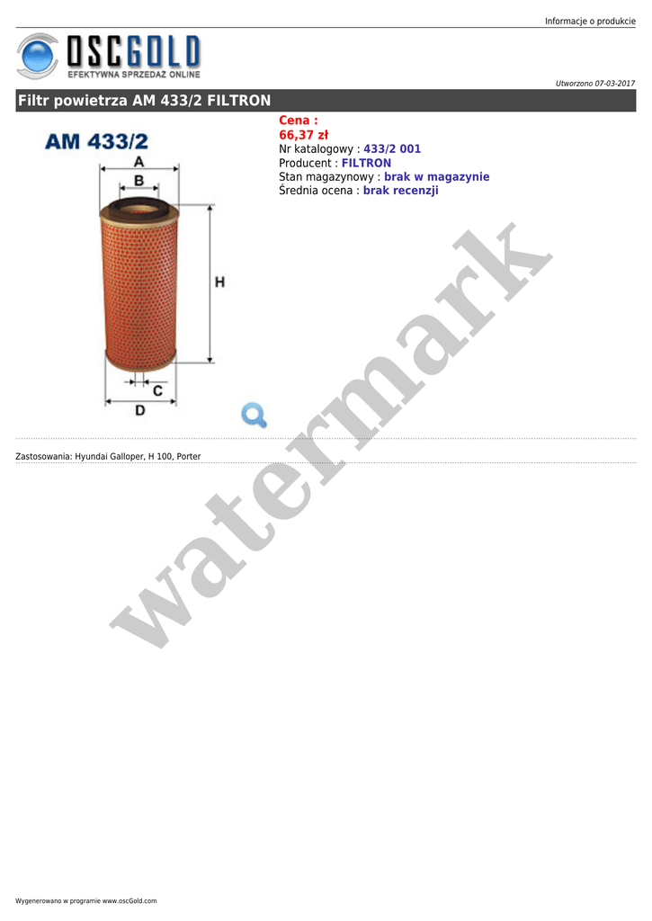 Informacje o produkcie Utworzono 07-03-2017 Filtr powietrza AM 433/2 FILTRON Cena : 66,37 zł er m ar k Nr katalogowy : 433/2 001 Producent : FILTRON Stan magazynowy : brak w magazynie Średnia ocena : brak recenzji w at Zastosowania: Hyundai Galloper, H 100, Porter Wygenerowano w programie www.oscGold.com