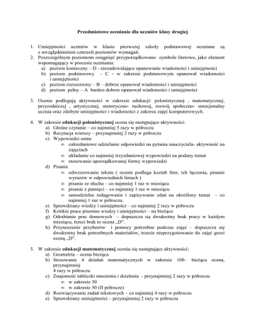 Przedmiotowe ocenianie dla uczniów klasy drugiej