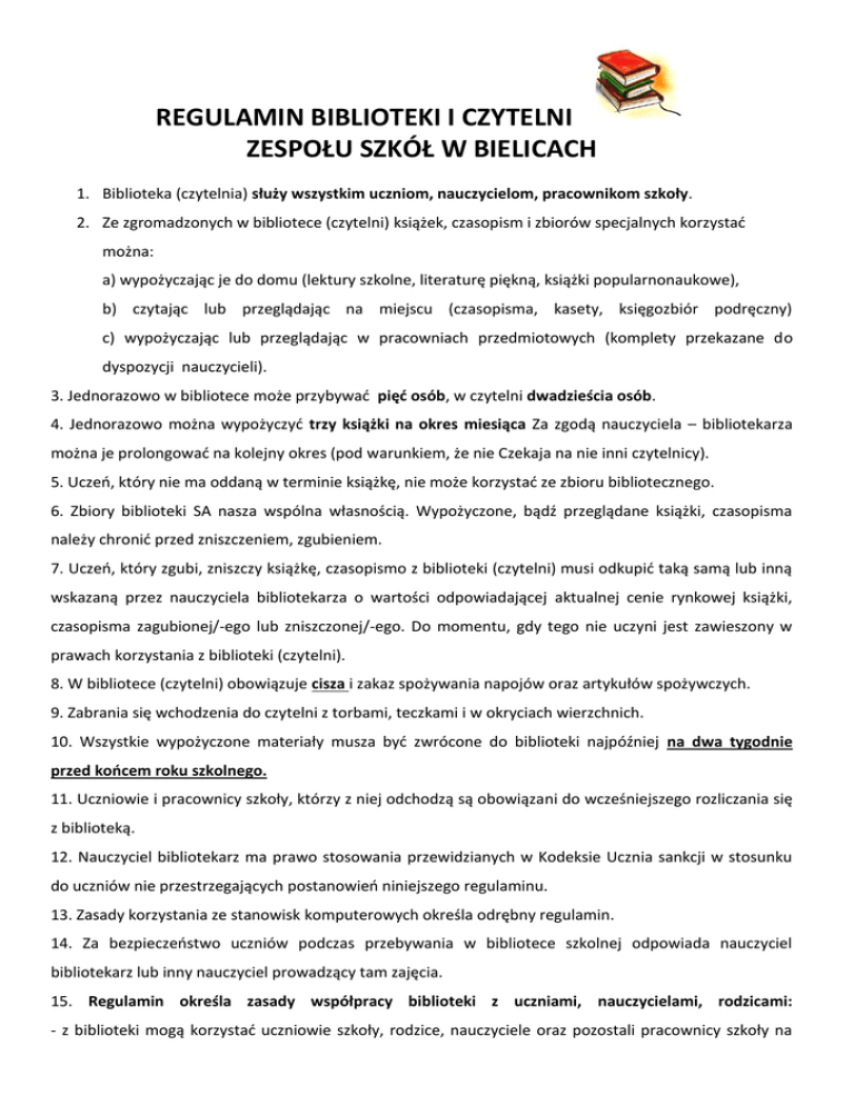 REGULAMIN BIBLIOTEKI I CZYTELNI ZESPOŁU SZKÓŁ W