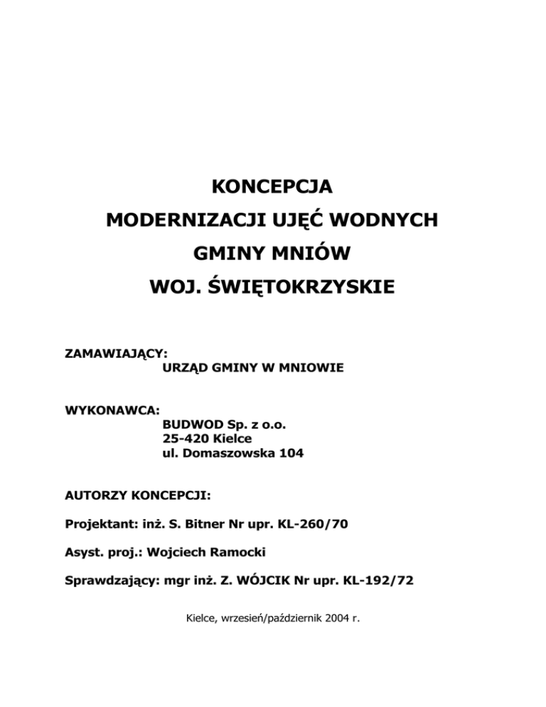 Koncepcja modernizacji ujęć wodnych - Mniów - BIP Mniów