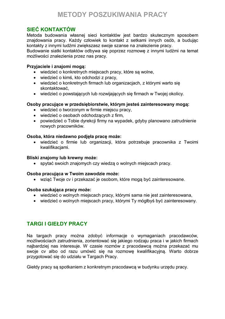 METODY POSZUKIWANIA PRACY
