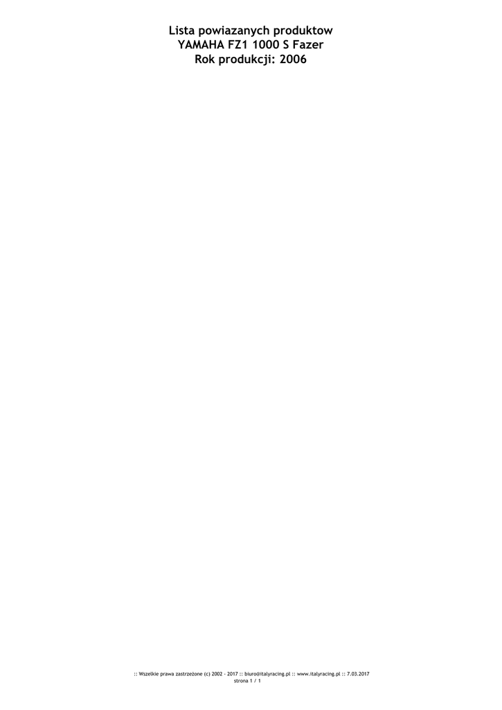 Lista powiazanych produktow YAMAHA FZ1 1000 S Fazer Rok produkcji: 2006 :: Wszelkie prawa zastrzeżone (c) 2002 - 2017 :: [email protected] :: www.italyracing.pl :: 7.03.2017 strona 1 / 1