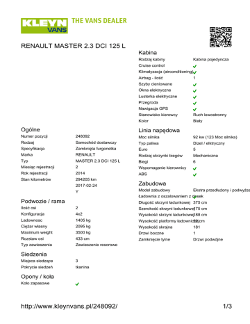 http://www.kleynvans.pl/248092/ 1/3 RENAULT MASTER 2.3 DCI