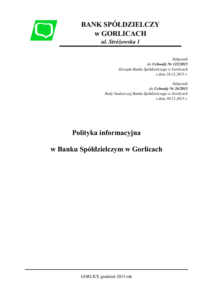 BANK SPÓŁDZIELCZY w GORLICACH Polityka informacyjna w