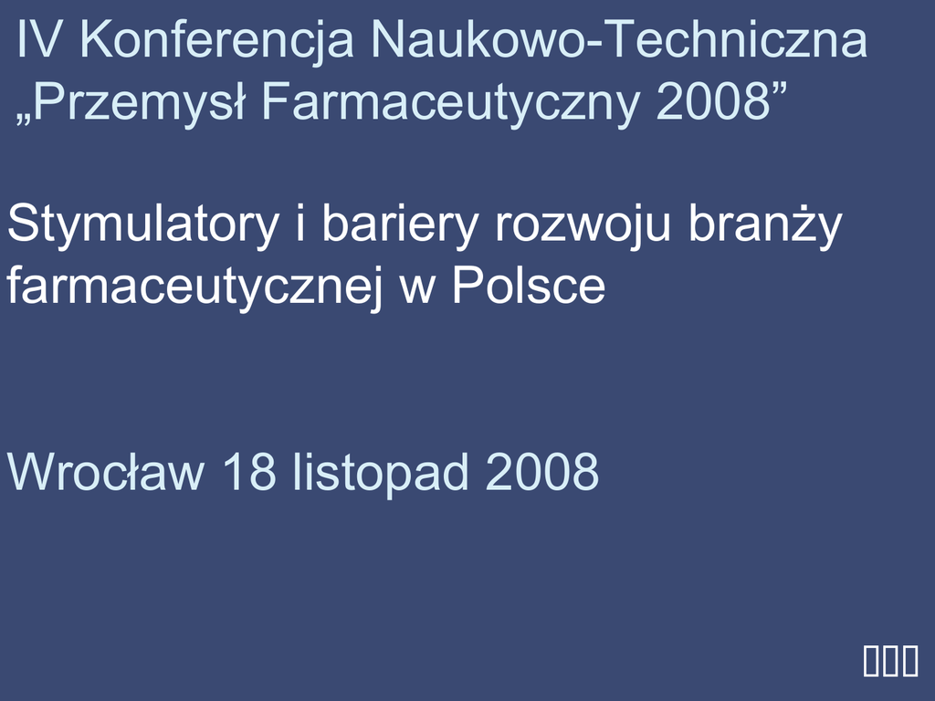 IV Konferencja Naukowo-Techniczna „Przemysł Farmaceutyczny