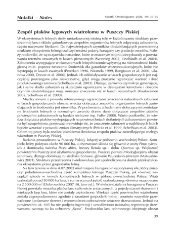 Notatki – Notes Zespół ptaków lęgowych wiatrołomu w Puszczy Piskiej