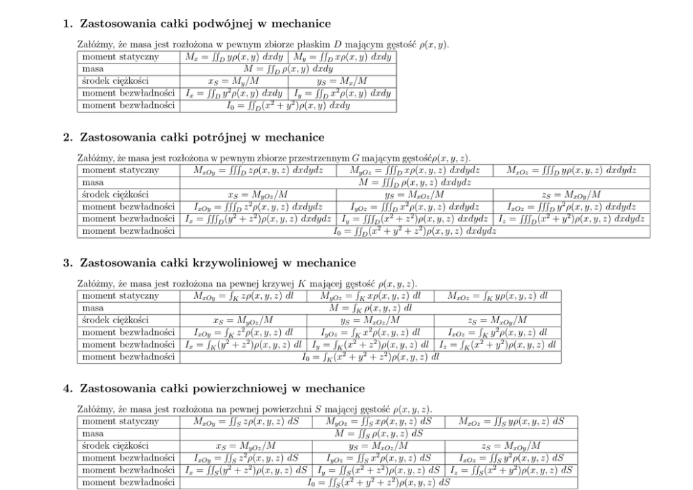 1. Zastosowania całki podwójnej w mechanice 2. Zastosowania