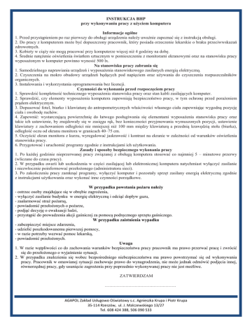 Instrukcja bhp obsługi komputera