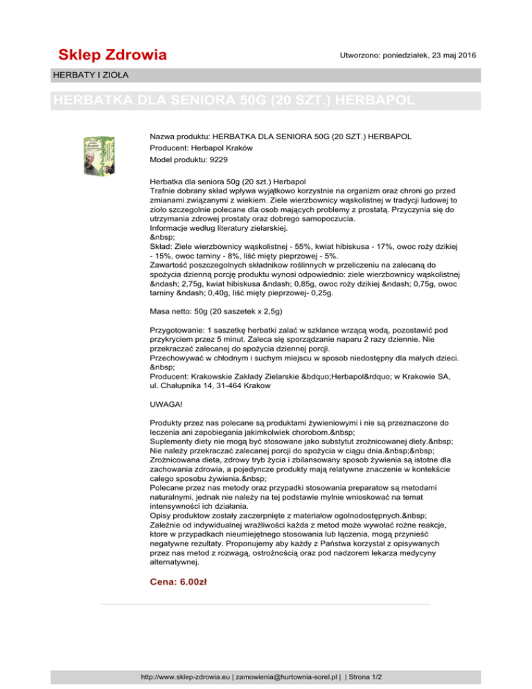 herbatka dla seniora 50g (20 szt.) herbapol - sklep