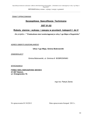 Szczegółowa Specyfikacja Techniczna SST 01.02 Roboty ziemne