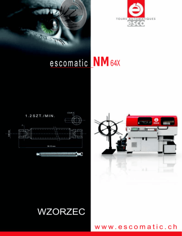NM 64X 3.80 mm 1 . 2 S Z T. / M I N . 38.10 mm WZORZEC w w w. e s c o m a t i c . c h ZASADA e s c o m a t i c 2 escomatic.ch W porównaniu z konwencjonalnymi automatami tokarskimi automaty tokarskie escomatic wyróżnia szczególna zasada działania. Materiał doprowadzany jest z kręgu (kłębka) lub podawany w postaci pręta. Nie wiruje on, lecz obrabiany jest przez wirującą głowicę narzędziową. Tej zasadzie budowy nadającej się najlepiej dla produkcji mało-, średnio- i wielkoseryjnej, zawdzięczają maszyny escomatic swoją wysoką wydajność i ekonomiczność. 4 3 2 5 1 Przykłady: Podziałka w milimetrach 5.5 SZT./MIN. 3 SZT./MIN. 3 SZT./MIN. (CuNi18Zn19Pb1) (MOSIĄDZ) (MOSIĄZ) 0 mm 4 SZT./MIN. 4.6 SZT./MIN. 3.3 SZT./MIN. 5 SZT.MIN. (303/1.4305) (303/1.4305) (420/1.4034) (MOSIĄZ) 10 20 30 40 50 ESCO SA CH 2206 Les Geneveys-sur-Coffrane Tél. +41 32 858 12 12 NM 64X NADZWYCZAJ WYDAJNY DZIĘKI PROSTOCIE DOPROWADZENIE MATERIAŁU Maszyna jest zasilana materiałem z kręgu, który w zależności od materiału ma masę między 30 a 80 kg; jest on odwijany z odwijaka dostawionego do maszyny. Jednostka posuwu przeciąga materiał przez maszynę. Maszynę można wyposażyć w miejsce jednostki prostującej oraz odwijaka, w podajnik prętów. 1 PROSTOWANIE Materiał doprowadzony z kręgu prostowany jest rotacyjnie w aparacie prostującym. W procesie tym dzięki powrotnemu ruchowi rotora prostującego uzyskuje się tak wyprostowany materiał, że odpowiada on pod względem jakości standardowemu materiałowi prętowemu. 2 POSUW MATERIAŁU Materiał jest przesuwany i doprowadzany do maszyny przez oś Z1 sterowaną CNC oraz jednostkę posuwową. Tulejka posuwowa (Typ Schäublin F8) zamontowana jest w systemie rurowym możliwie blisko tulejki prowadzącej. 3 TOCZENIE & OBRÓBKA DRUGIEJ STRONY Materiał doprowadzany jest przez tulejke prowadzącą do głowicy narzędziowej. Toczenie i odcinanie odbywa się wg oryginalnej metody escomatic, zgodnie z którą cztery noże tokarskie wirują wokół przedmiotu obrabianego z prędkością obrotową do 12’000 obrotów na minutę. Do odcięcia części bez czopa przedmiot obrabiany mocowany jest w przeciwtulejce zaciskowej. Do obróbki drugiej strony dostępne są cztery stałe lub napędzane pozycje narzędziowe osiowe oraz dwie promieniowe. 4 PRZECIWWRZECIONO & OBRÓBKA OD CZOŁA Jednostka do obróbki od czoła (DUF) wyposażona w trzy wrzeciona osiowe i opcjonalnie jedną jednostkę do obróbki poprzecznej, jak również przeciwwrzeciono wyposażone w oś C przesuwna jest w osiach X2 / Z2 i Y. Możliwe jest wykonywanie zabiegów wiercenia, nacinania gwintów zewnętrznych i wewnętrznych, cięcia i frezowania w tulejce prowadzącej, zanim przedmiot obrabiany zostanie zamocowany w przeciwtulejce zaciskowej i odcięty. Taka konfiguracja maszyny umożliwia równoległe toczenie i obróbkę od strony czoła w głowicy narzędziowej oraz obróbkę od drugiej strony w przeciwwrzecionie. Dzięki temu uzyskuje się znaczne skrócenie czasu cyklu. 5 Fax +41 32 858 12 05 [email protected] www.escomatic.ch 3 NM 64X 4 NADZWYCZAJ WYDAJNY DZIĘKI PROSTOCIE Automaty tokarskie serii NM64X dostępne są w różnych wykonaniach: • NM640 wyposażony w przeciwtulejkę zaciskową do toczenia prostych części • NM641 wyposażony w przeciwtulejkę zaciskową i hydrauliczną oś poprzeczną (X2) • NM643F z 3 wrzecionową jednostką do obróbki od czoła oraz przeciwtulejką zaciskową oraz opcjonalnie jednym wrzecionem do obróbki poprzecznej • NM644D wyposażony w przeciwwrzeciono (10’000 obr./min.), oś Y oraz jednostkę do obróbki drugiej strony z 4 pozycjami do mocowania stałych narzędzi obróbkowych; Opcje: napędzane narzędzia osiowe, oś C podwójna jednostka do obróbki poprzecznej • NM647 wyposażony w przeciwwrzeciono (10’000 obr./min.), oś Y, 3 wrzecionową jednostkę do obróbki od czoła i jedną jednostkę do obróbki drugiej strony z 4 pozycjami do mocowania stałych osiowych narzędzi obróbkowych; Opcje: napędzane narzędzia osiowe, oś C oraz podwójna jednostka do obróbki poprzecznej lub wrzeciono do obróbki poprzecznej na jednostce do obróbki od czoła. • Średnca materiału do 6.50 mm z kręgu lub w postaci pręta • Wirująca głowica narzędziowa; prędkość obrotowa 12’000 obr./min. • 4 odrębnie sterowane noże tokarskie • Odcinanie bez czopa • Szybkoprzezbrajalny i elastyczny w nastawianiu • Zapewnia utrzymanie wąskich tolerancji dzięki zastosowaniu nastawnej tulejki prowadzącej, którą można stosować w charakterze tulejki zaciskowej podczas odcinania. • Wysoka ekonomiczność dzięki oszczędności materiału, mniejszej pracochłonności obsługi i mniejszemu zapotrzebowaniu miejsca dzięki stosowaniu materiału w kręgu. • Wyższa wydajność dzięki krótszym drogom ruchów narzędzi w kierunku do przedmiotu obrabianego i równomiernemu doprowadzeniu materiału. • Pewna produkcja w cyklu 24 godzinnym • Wysoka przyjazność dla obsługującego i proste programowanie w kodzie ISO 2340 x 1700 x 1550 3360 x 1700 x 1550 Przedstawicielstwo: E-mail: [email protected] Internet: www.meftech.com.pl ESCO SA CH 2206 Les Geneveys-sur-Coffrane Tél. +41 32 858 12 12 Fax +41 32 858 12 05 [email protected] www.escomatic.ch