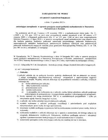 Zarządzenie nr 99/2012 Starosty Krośnieńskiego z dnia 31 grudnia