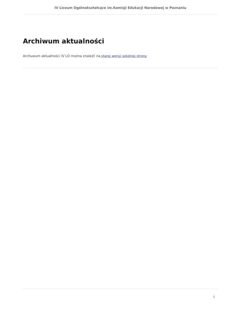 IV Liceum Ogólnokształcące im.Komisji Edukacji Narodowej w Poznaniu Archiwum aktualności Archuwum aktualności IV LO można znaleźć na starej wersji szkolnej strony 1