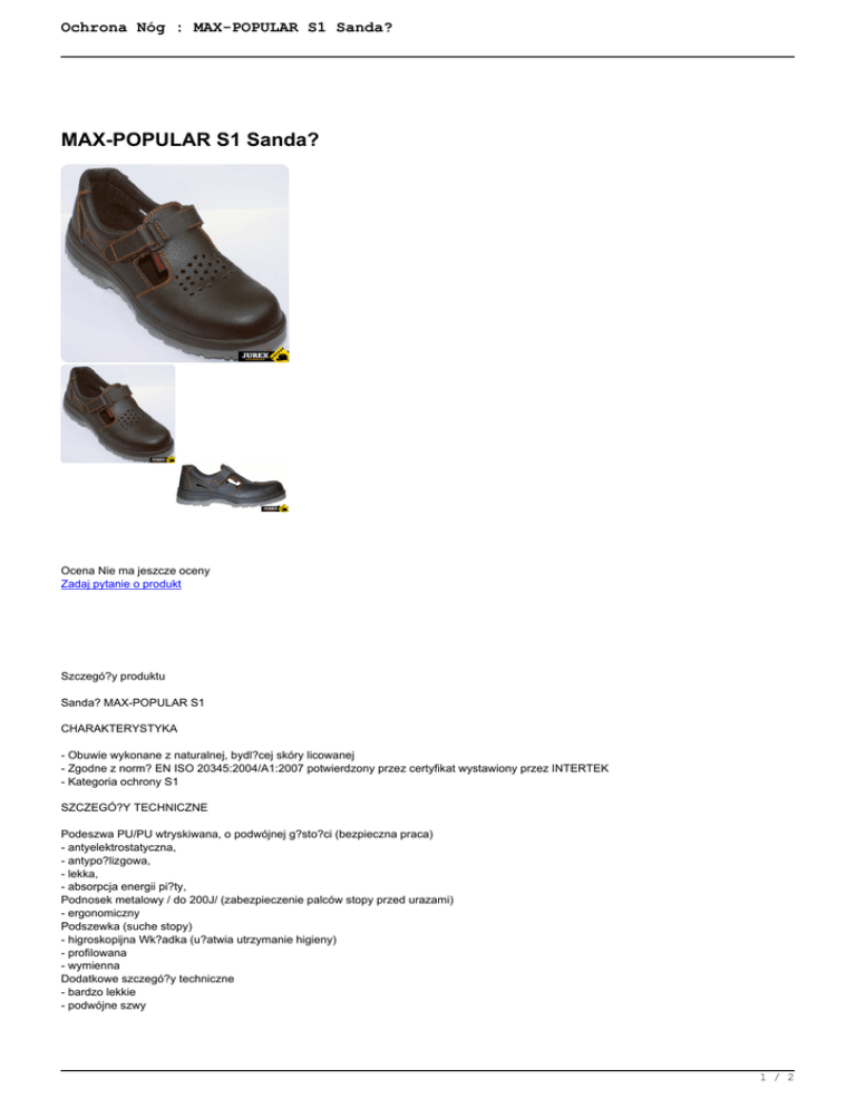 Ochrona Nóg : MAX-POPULAR S1 Sandał - jurex