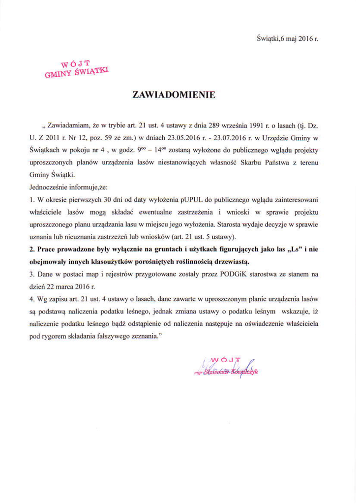 z m.) w ddrch 23.05.2016 r - 21.07.2016 r w Uzedzie Cminy s