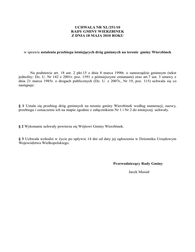UCHWAŁA NR XL/251/10 RADY GMINY WIERZBINEK Z DNIA 18