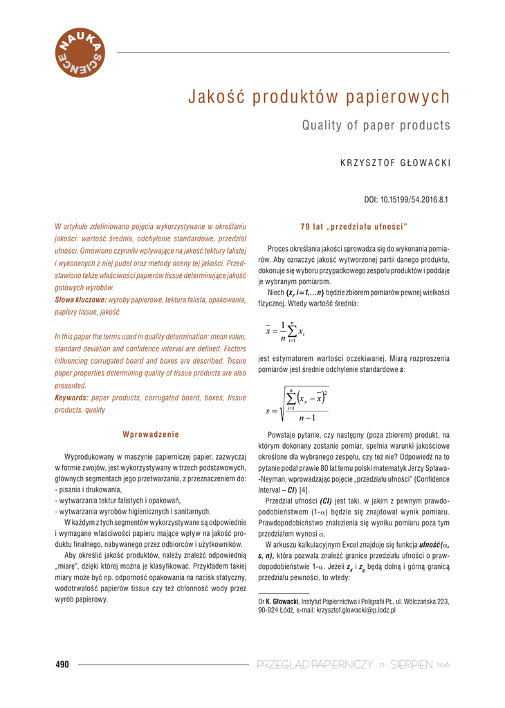 PRZEGLĄD PAPIERNICZY · 72 · SIERPIEŃ 2016