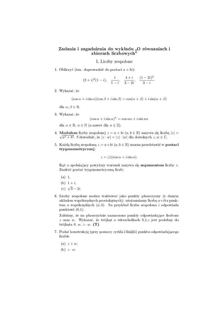 Zadania i zagadnienia do wykªadu O równaniach i zbiorach