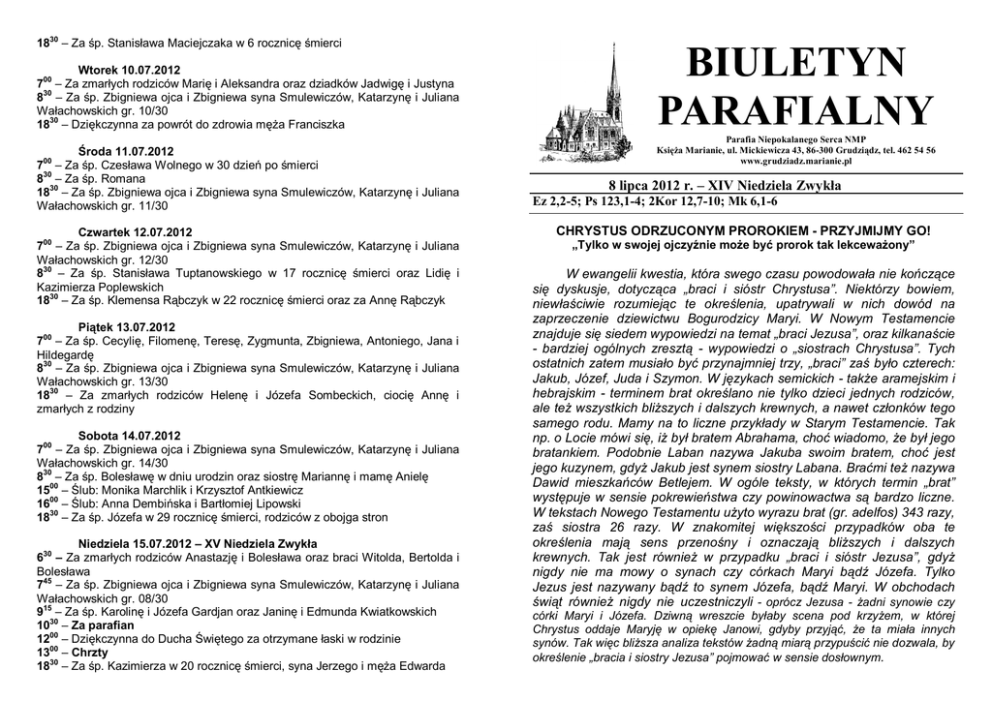 biuletyn parafialny - Parafia Niepokalanego Serca NMP w Grudziądzu